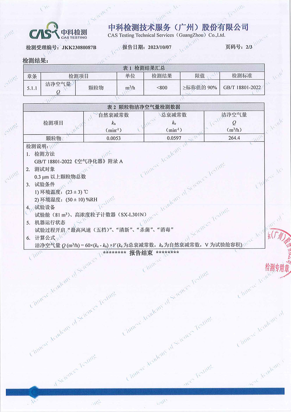 JKK23080087B 湖南上派新材料有限公司  CADR(颗粒物)-不盖章 18801-2022-W