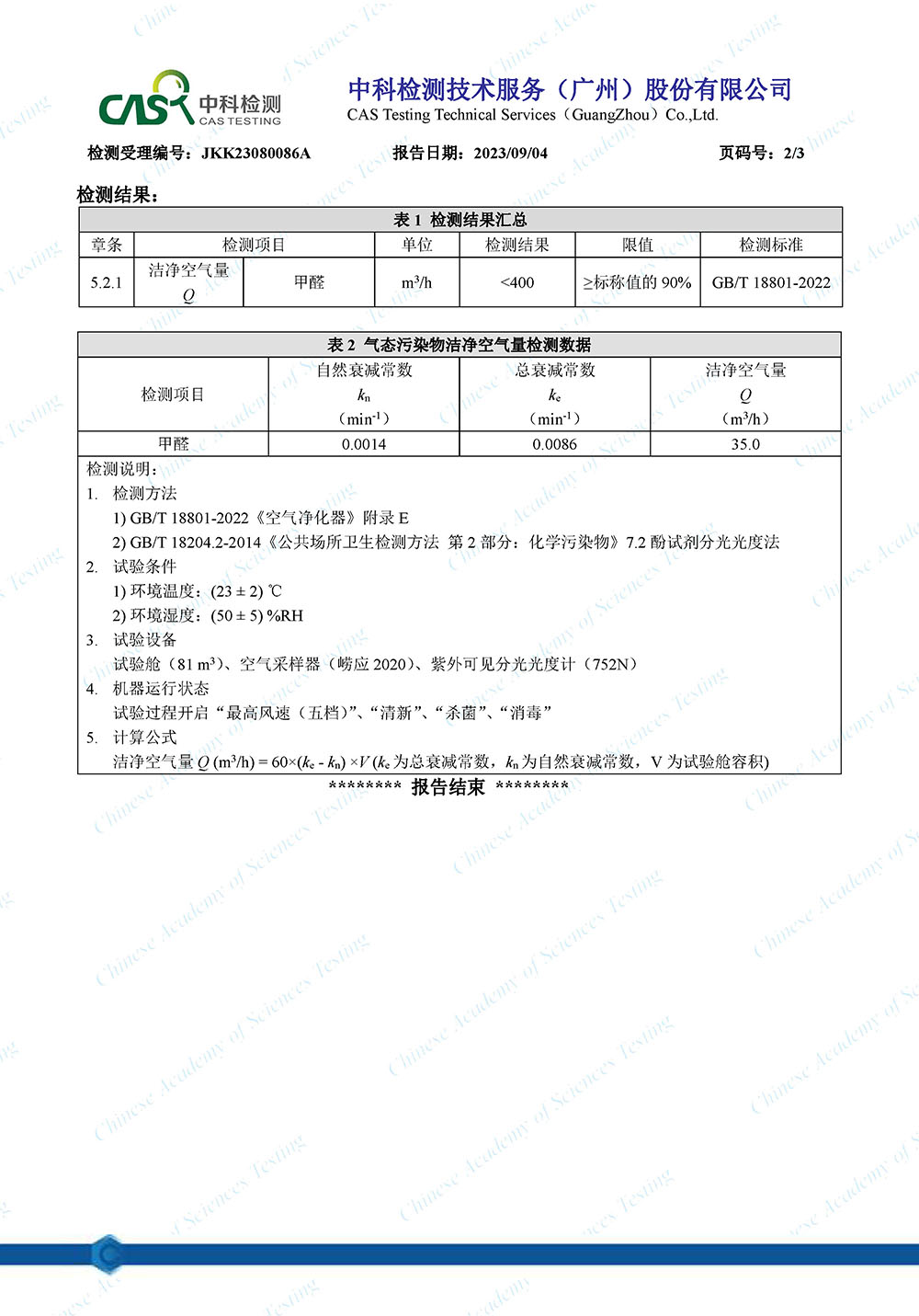 JKK23080086A 湖南上派科技有限公司 CADR(甲醛)-不盖章 18801-2022-W