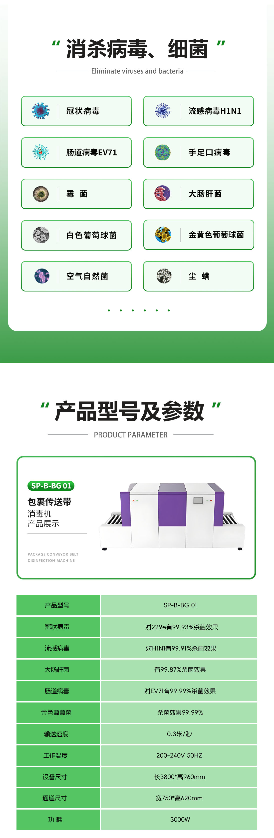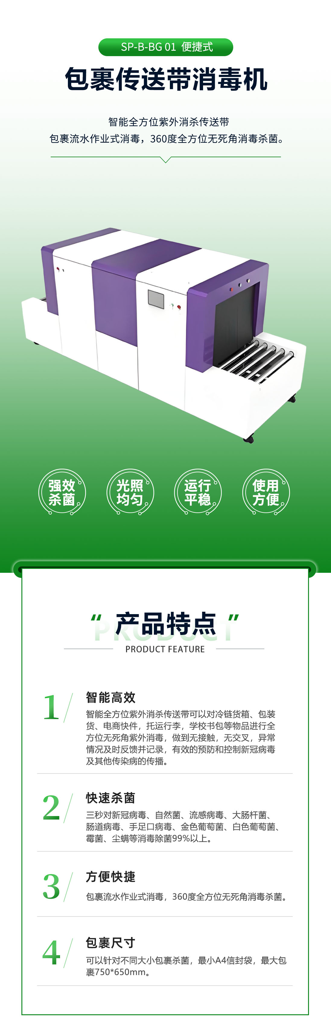 3.方便快捷:包裹流水作业式消毒,360度全方位无死角消毒杀菌。
