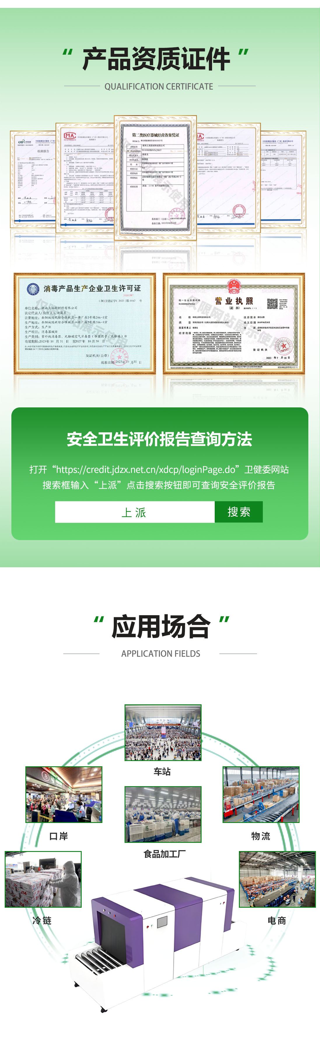 1.智能全方位紫外消杀传送带可以对冷链货箱、包装货、电商快件,托运行李,学校书包等物品进行全方位无死角紫外消毒,做到无接触,无交叉,异常情况及时反馈并记录,有效的预防和控制新冠病毒及其他传染病的传播。