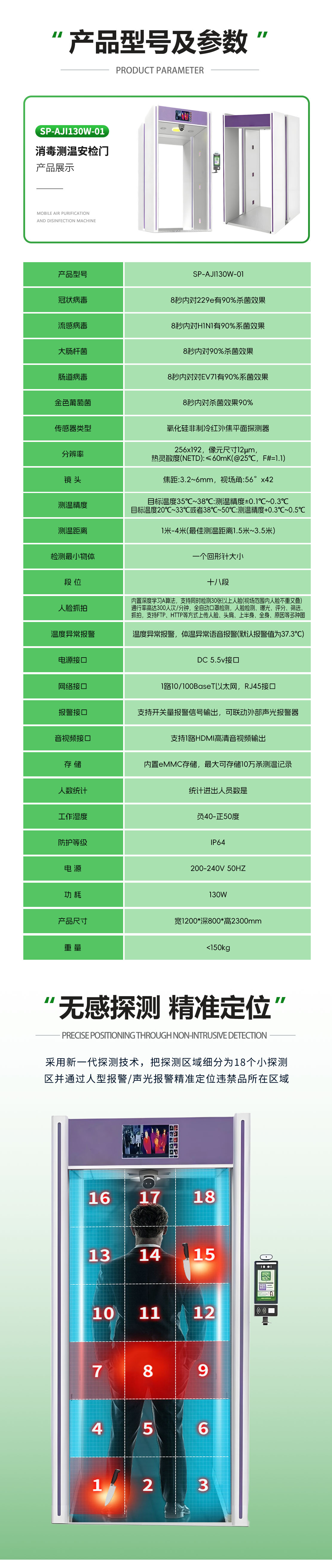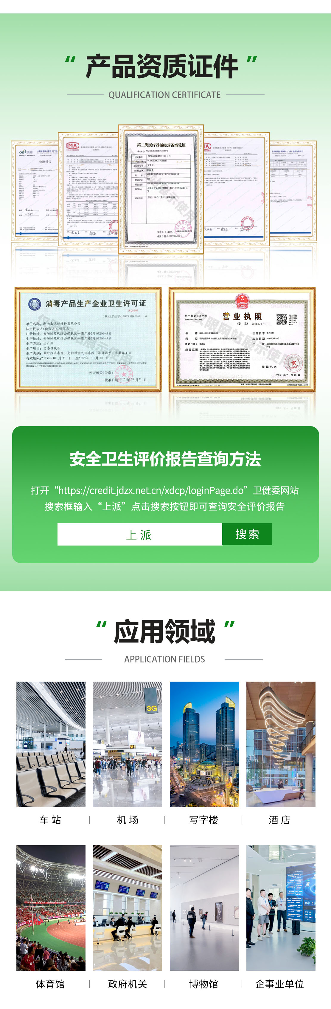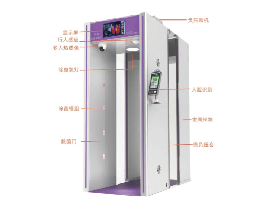 1.人体消毒:采用人机共存物理深紫外消毒技术,做到无接触,无交叉,不残留,8秒对人体身上的新冠病毒、流感病毒、大肠杆菌、肠道病毒、手足口病毒、金 色葡萄菌、白色葡萄菌、霉菌等消毒除菌率达到90%以上。