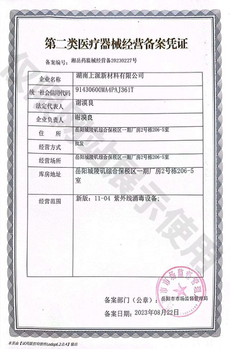 Class II medical device business Filing Certificate