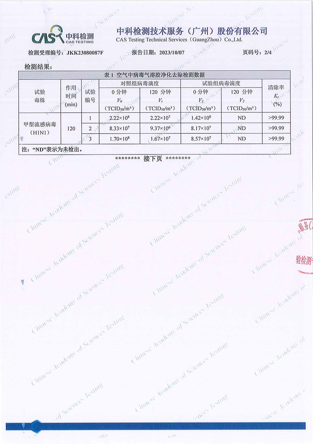 JKK23080087F 湖南上派新材料有限公司 除病毒(H1N1)-CNAS